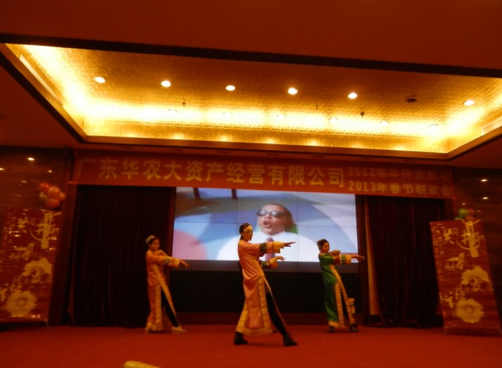 2012年1月25日下午,廣東華農大資產經營有限公司聯歡大會在廣州源華酒店隆重舉行,我司作為屬下企業參與了本次會議。大會共分為三個環節,第一個環節:年度優秀集體與個人的表彰大會;第二個環節:各企業節目表演;第三個環節:晚宴與抽獎。