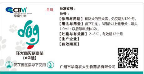 新獸藥名稱:狂犬病滅活疫苗(dG株)