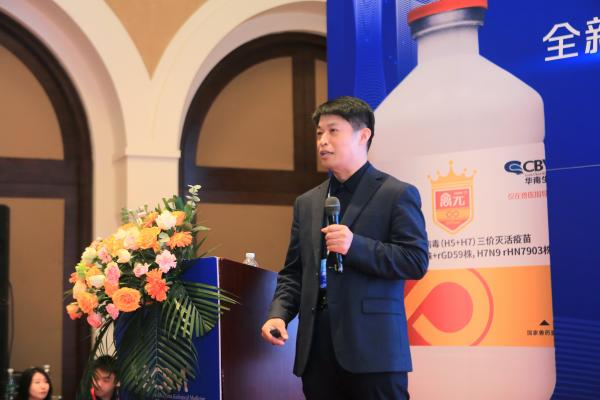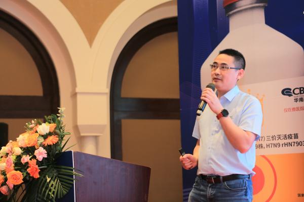 葉賀佳分享《禽元產品特點及優勢》主題報告。葉賀佳詳細介紹了禽元產品對當前H5N1、H5N6亞型AIV流行毒株以及H7N9亞型AIV等禽流感流行毒株的良好保護效果。期間,葉賀佳重點講解了“金蓋禽元∞”高抗原含量、低免疫應激、高抗體水平、低免疫成本的四大產品優勢以及對客戶養殖效益提升。