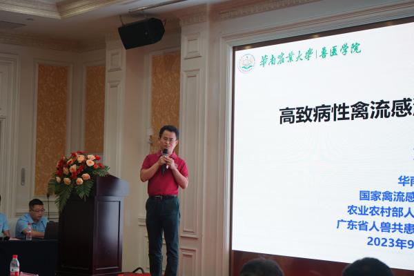 華南農(nóng)業(yè)大學(xué)賈偉新教授做“高致病性禽流感流行現(xiàn)狀與防控建議”的主題報(bào)告。賈老師表示目前禽流感在國內(nèi)外肆虐,同時(shí)介紹了國內(nèi)外禽流感的流行現(xiàn)狀并提出了相關(guān)防控建議。賈老師建議高致病性禽流感的防控需要選擇優(yōu)質(zhì)的疫苗,加強(qiáng)生物安全防控,提高飼養(yǎng)管理水平,多措并舉才能將發(fā)病風(fēng)險(xiǎn)降到最低。