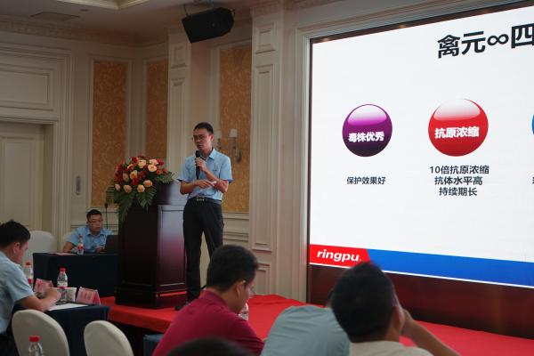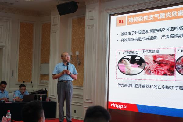 瑞普生物產(chǎn)品線副總裁尤永君做“家禽常見疫病的流行動(dòng)態(tài)及防控策略”主題報(bào)告。尤總對(duì)當(dāng)前危害家禽業(yè)比較重大的疾病如傳染性支氣管炎、傳染性鼻炎、傳染性貧血、支原體、禽流感等進(jìn)行了詳細(xì)的介紹,并有針對(duì)性的提出了防控建議,對(duì)大家科學(xué)養(yǎng)殖提供了參考。